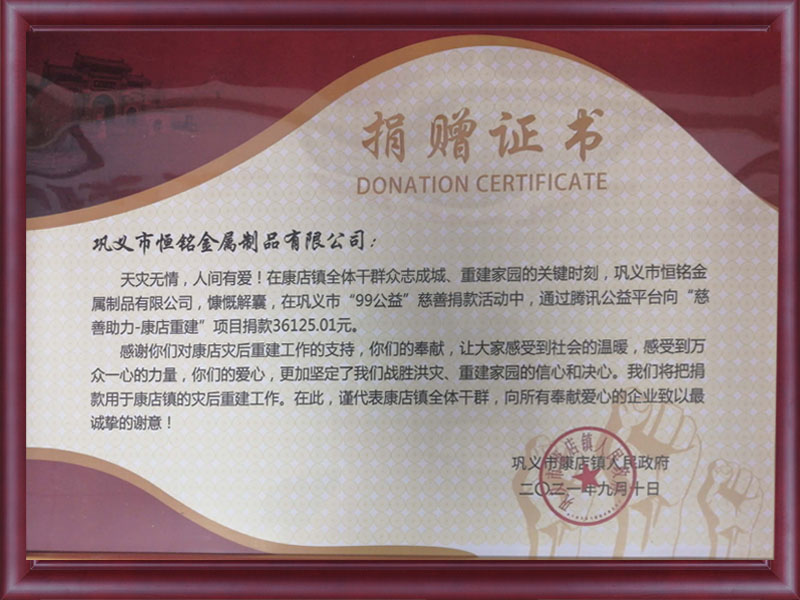 鞏義市恒銘金屬制品有限公司位于河南省鞏義市先進制造業開發區(康店園區),公司創建于2005年,前身是鞏義市康店恒銘金屬制品廠,并于2009年3月注冊了‘鞏義市恒銘金屬制品有限公司’,注冊資金600萬元,占地面積1.5萬平方米,隸屬金屬制品行業。公司擁有自己的研發隊伍,配備有精確的檢測設備。......